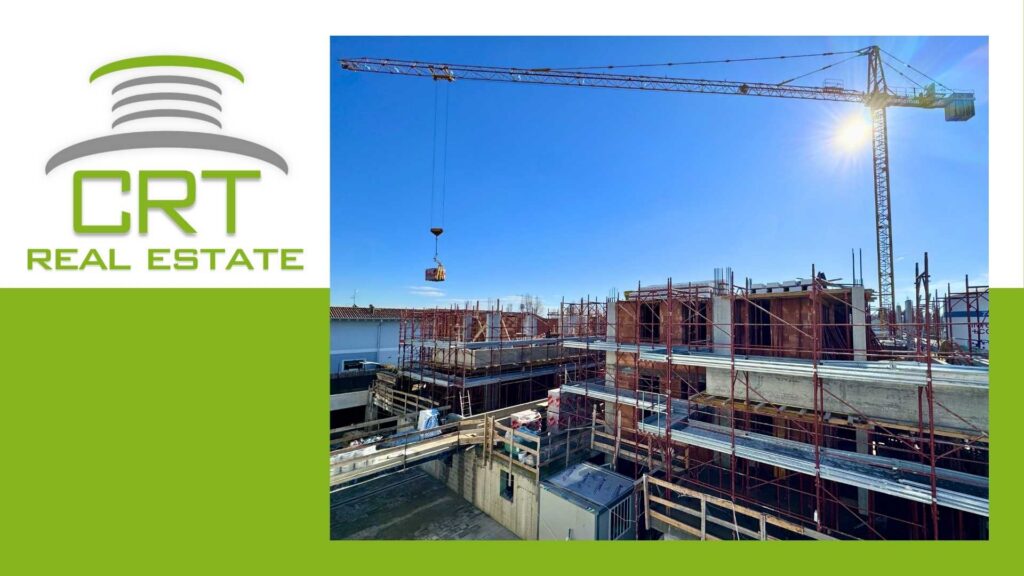 Ogni grande progetto inizia da qui: dal terreno. Su quest’area nasceranno quattro edifici. Due stanno già prendendo forma, gli altri due completeranno presto il disegno di un nuovo modo di abitare.