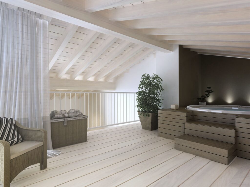 Al primo piano, due quadrilocali caratterizzati da soppalchi e travi a vista, che donano calore e ampiezza agli spazi, creando un’atmosfera accogliente e unica.